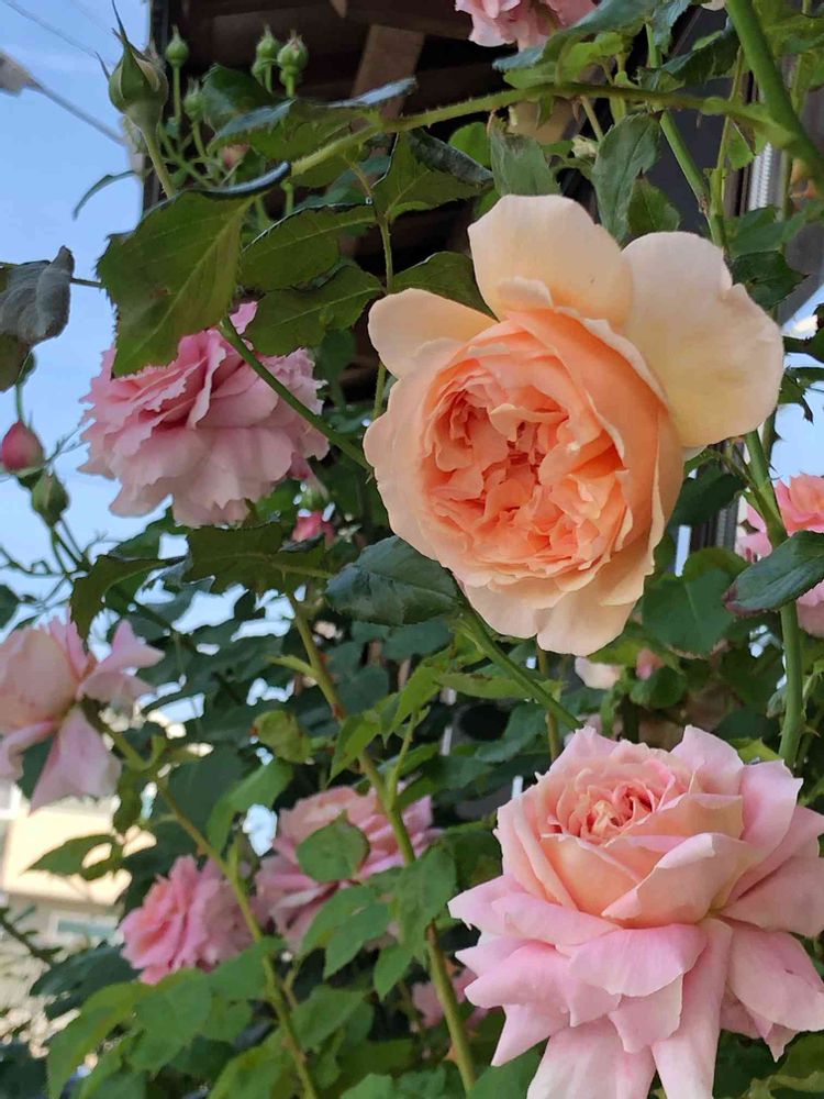 青空に向かって薔薇達が喜びを謳いあげているようです(*≧∀≦*)