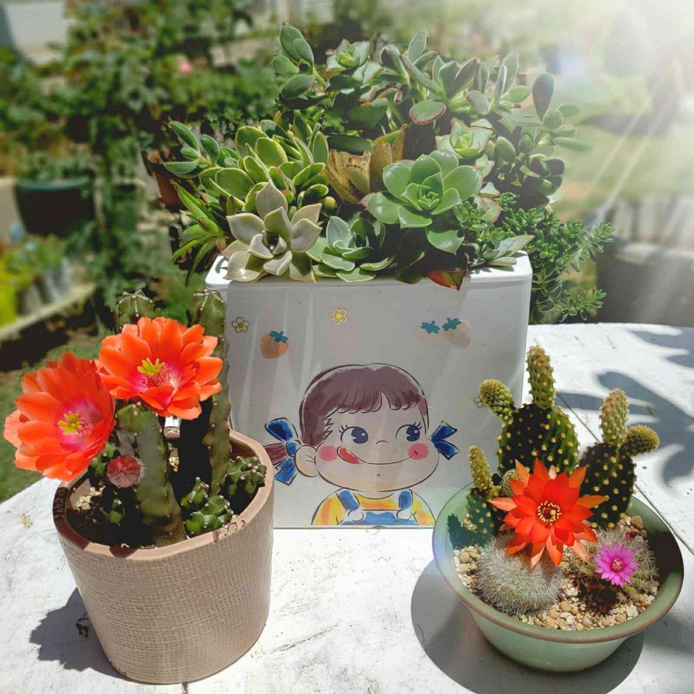 サボテンの寄せ植え、お花が咲くと一気に華やぎますよね🎵😃✨