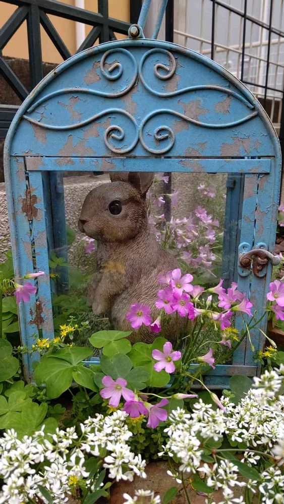 ブルーの枠にうさちゃん、そしてかわいいお花❁¨̮