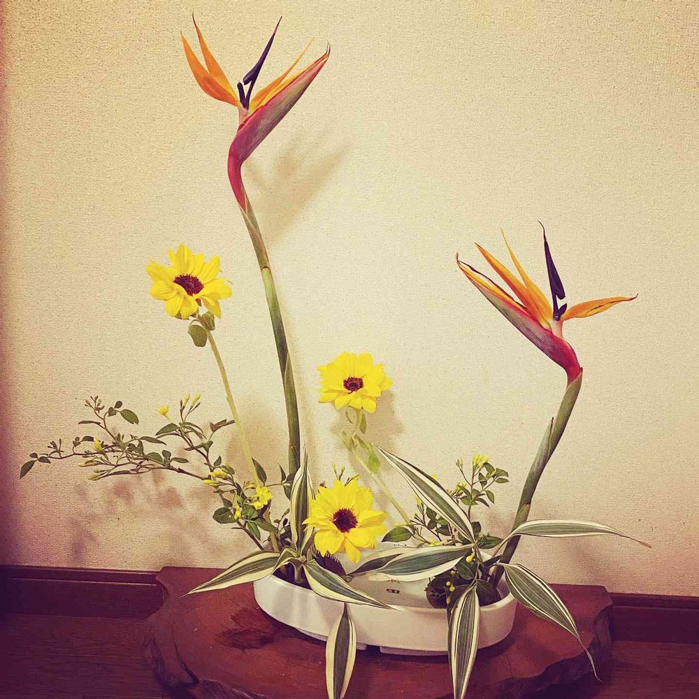 黄色を主体に活けたので明るい生け込みをする事が出来ました✨
