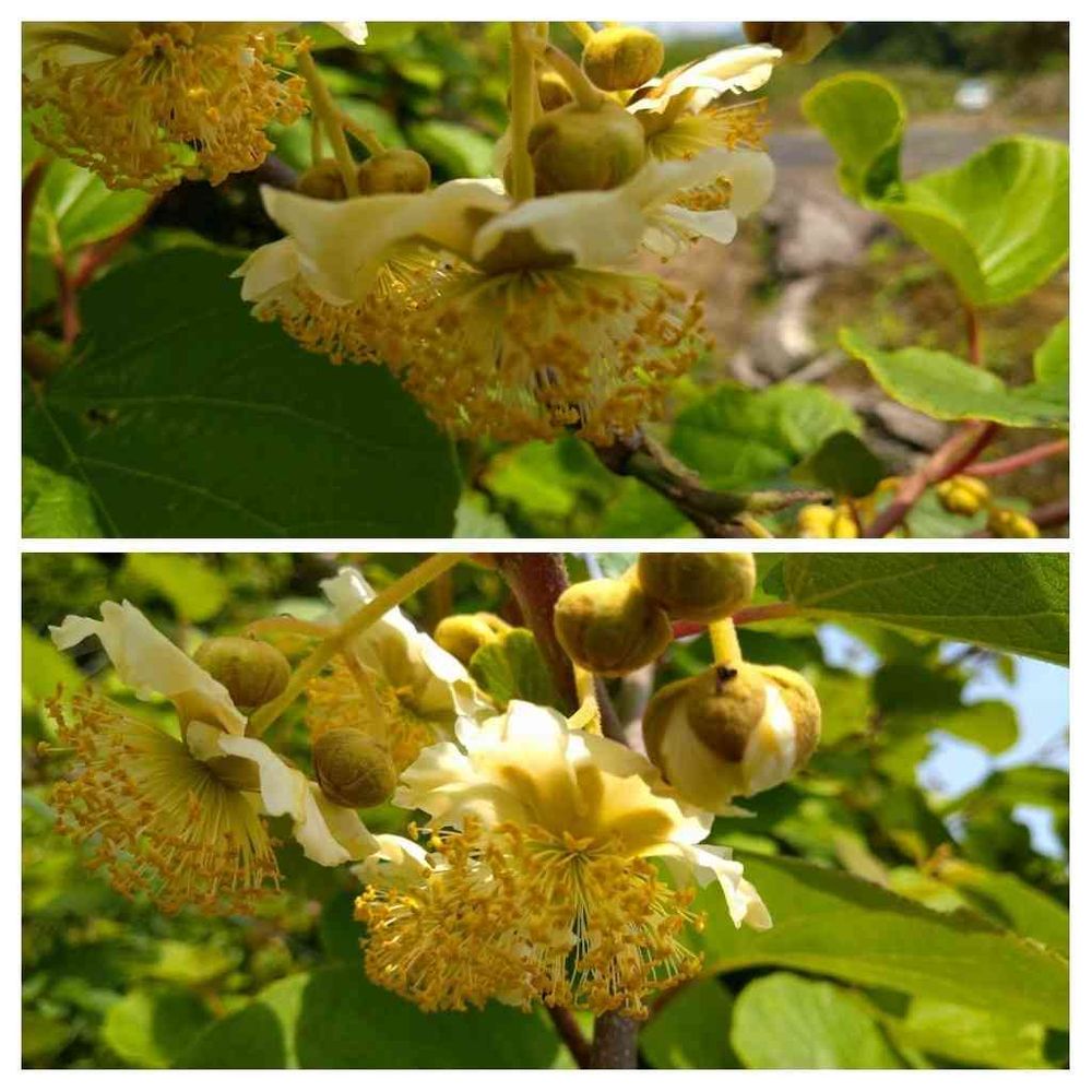 キウイフルーツの交配が始まっています。この花、雄花で花粉作りに取ります。