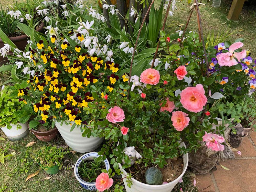 玄関,ビオラ,ミニ薔薇 名前不明の投稿画像