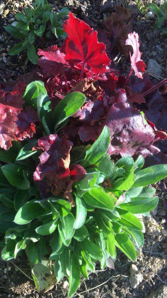 わすれな草の種がとんでカラーリーフとぶつかった(*´ー`*)
