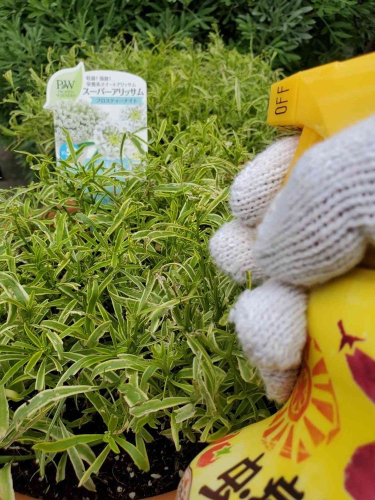 こちらはPWのスーパーアリッサムが何やら病気なのか葉っぱが白くまた虫食い等を確認…