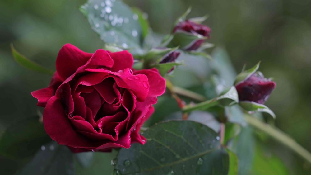 雨雫💧が紅い薔薇をいっそう美しく魅せる ❜