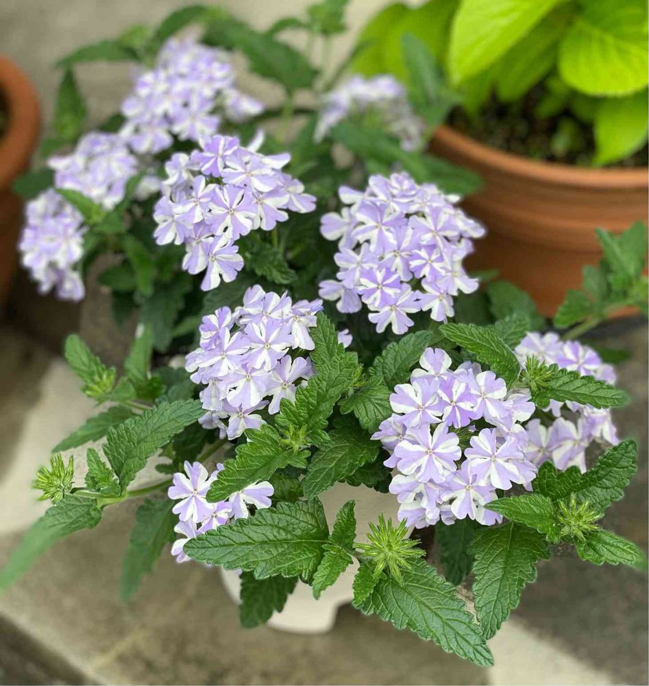 私も去年は横長の広いプランターに、こんもり咲くカリブラコアと植えたのですが、バーベナは横へ横へと平に広がっていき、なんだかアンバランスになってしまいました😅