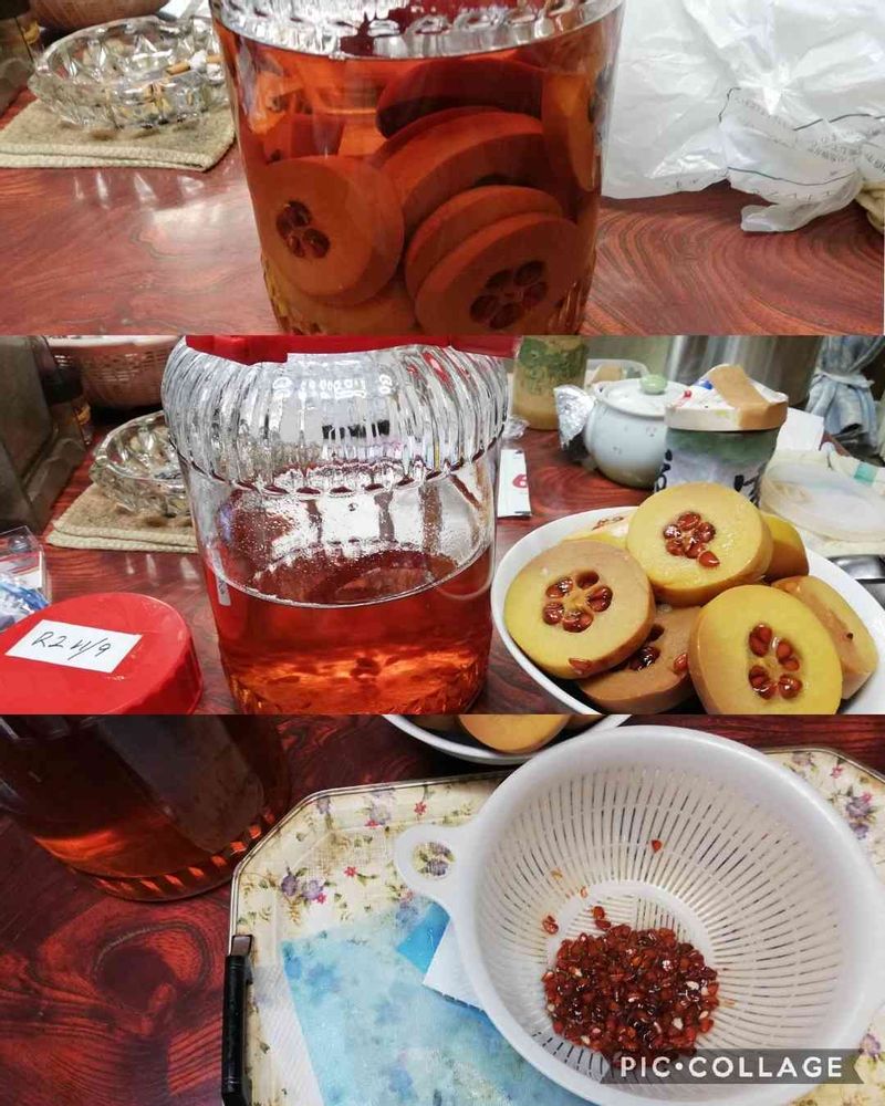 そういえば カリン酒 作っていたの 忘れていた 思い出して 半年過ぎているので中の実をとってみた 半分になってしまった 💦 そりゃそうだよね 🤭種も 細かいネットで ろ過することができました あと 半年位 寝かせてみよっと🎵