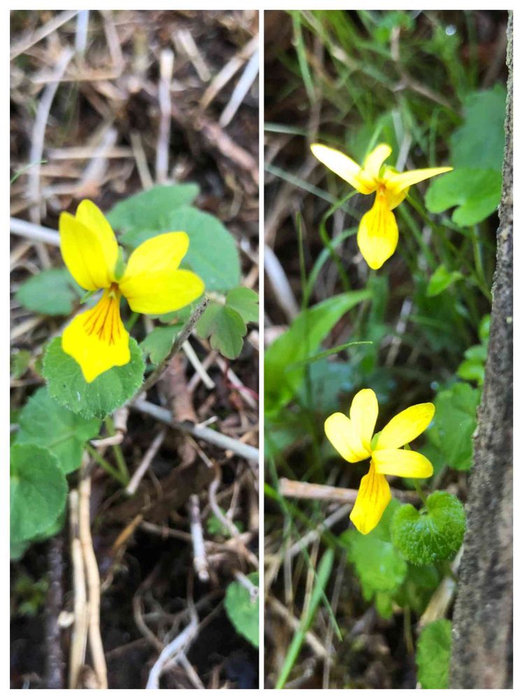 Wikipediaによると「黄花の駒の爪は、スミレ科スミレ属の多年生植物。和名にスミレが付かない、数少ないスミレの種である。和名の由来は、黄色の花で葉の形状が馬の蹄に似ていることから。 」とありました。葉っぱ、蹄に似てるかな〜🤔?