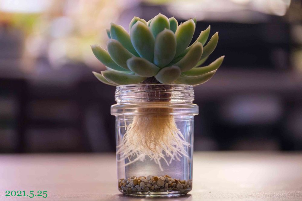 多肉の水耕栽培はあまりやりませんが、コレは試しに。子株は増えなそうですが....😅