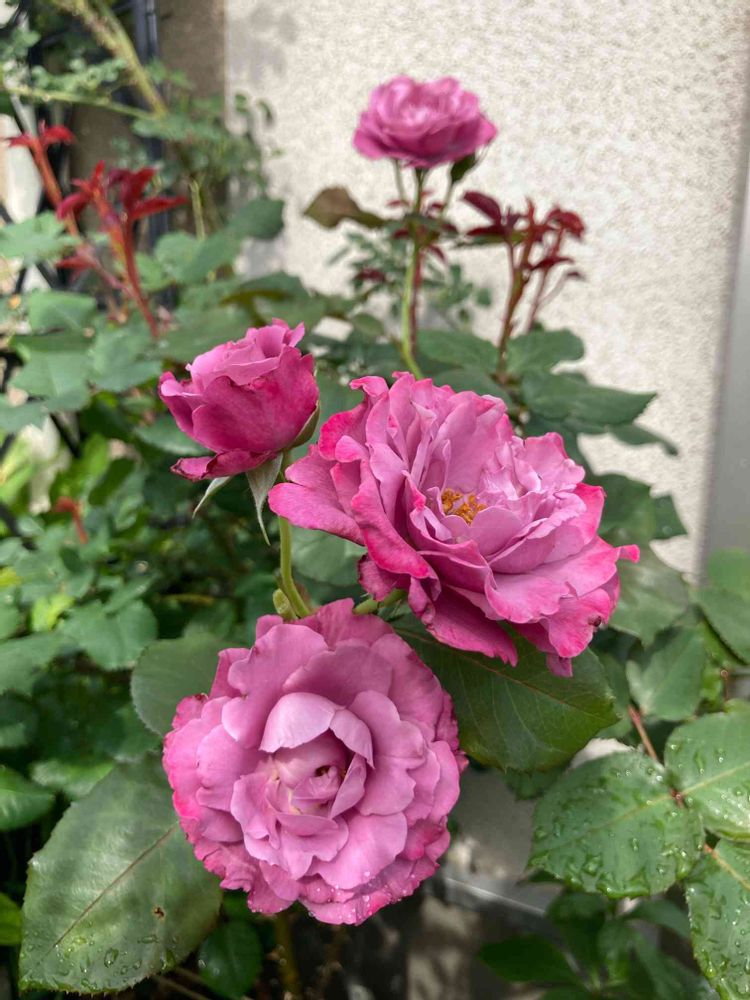 さん 4月末に咲いた時にはまだシュートが根本から出ていなかったのに今では立派なシュートが出てそこに蕾がたくさん💜💜本当は蕾は摘んだほうが良いのでしょうけれど咲かせてしまいそうな私です😆💕