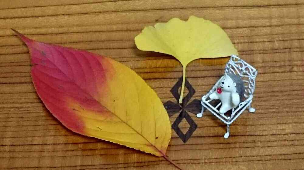 通行人の目を気にしながら拾った桜と銀杏の落とし物🍂