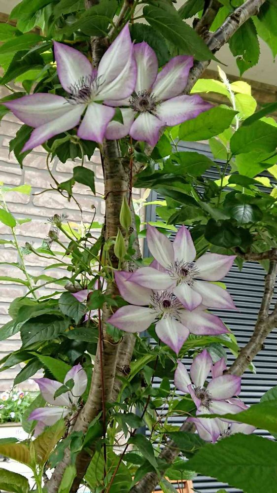 サクランボの木の前に鉢で置いてあったクレマチスさん