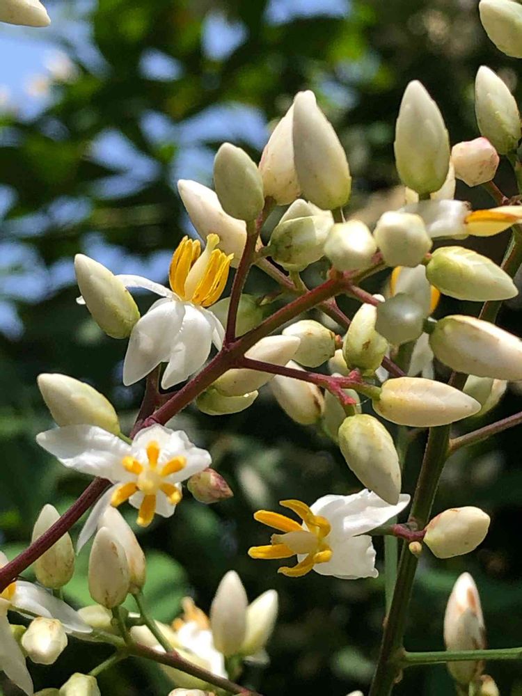 南天の花、柑橘系と似てるけど、全然小さいよ。