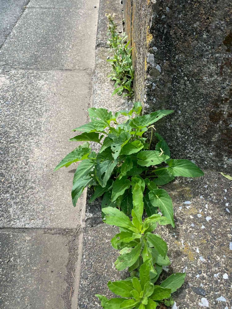 この通りにはなかったはずなのに、らしき葉っぱが!通り過ぎたけど気になり戻って確認したらスミレでした!