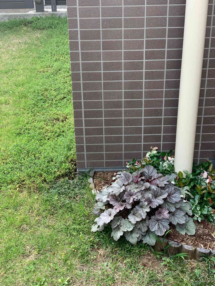 この場所は梅雨が明けたら正午前後に直射日光が当たり、ヒューケラにはちょっと過酷な場所になるため、梅雨前に南側の塀際に植え替えようかと思っています。