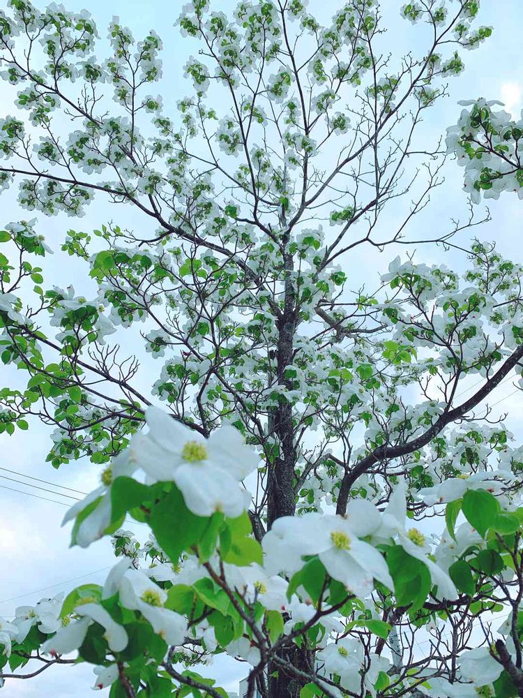 真っ白なハナミズキの天まで届きそうな素敵な姿
