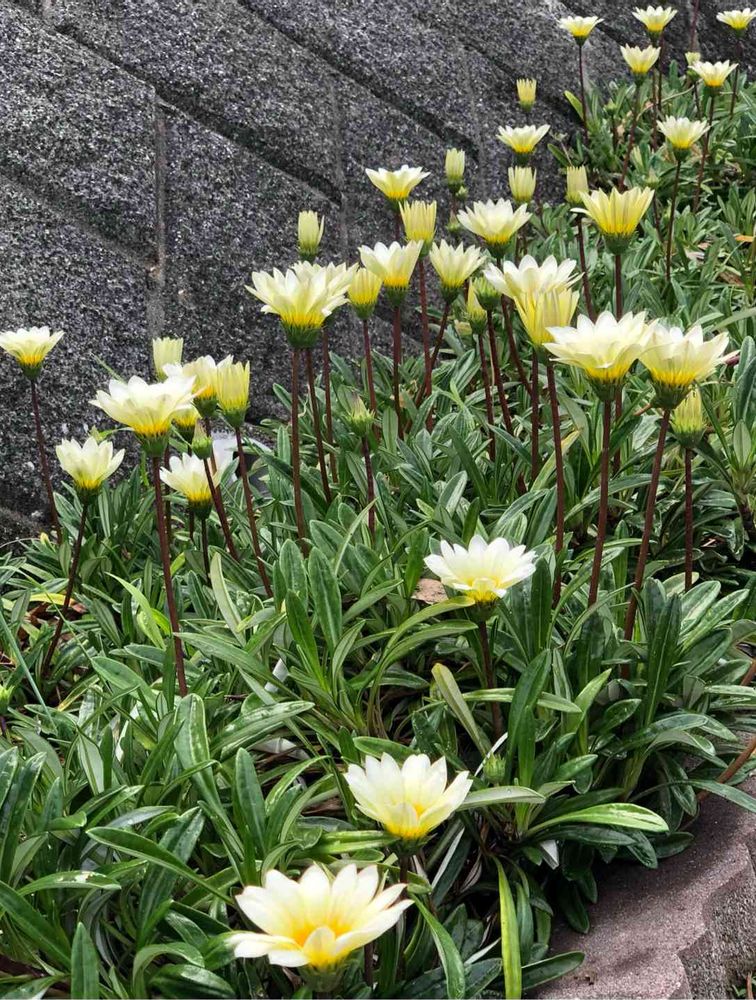 本当にお日さま大好きな【ガザニア】は、🌞が顔を出すと花が開き(咲く)🌞が隠れたり☔の日は花が(ToT) 朝通勤途中で見る【白い】