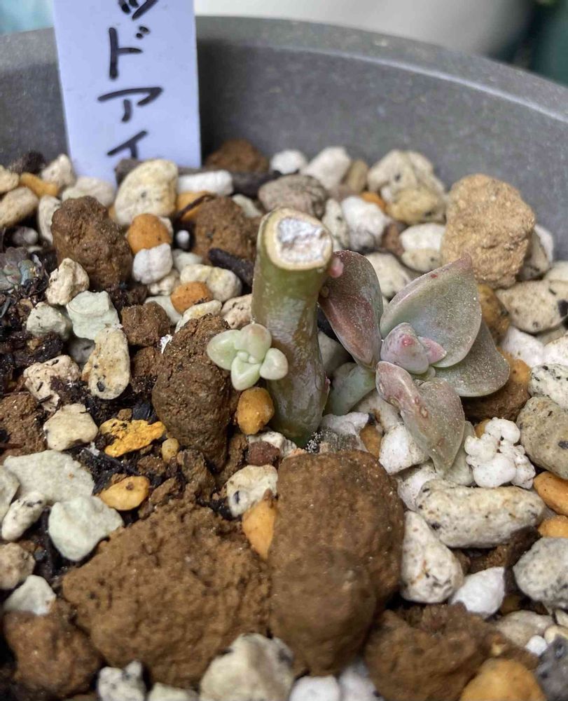 そうなんです!わたしのフリッドアイベスはお迎えした時は下を向いちゃってて整った姿を参考にしたかったのにあまり投稿されてなくて😅本当に始めたての時に来た子なので手探りでしたが、赤ちゃんも3つ出てますし、ちょんぱの頭の方も発根して、葉挿しも芽が出てきたので元気みたいです!形も色合いもかわいいですよね💕