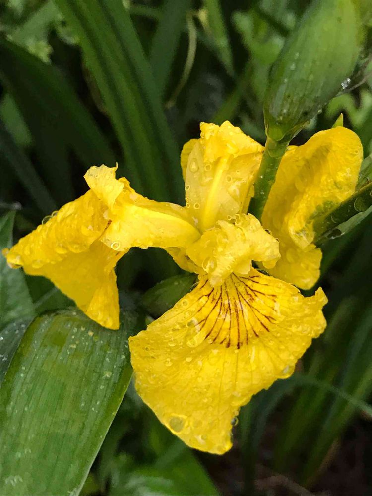 今朝は雨☂️だけど庭の片隅でキショウブがきれいに咲いてます🌼