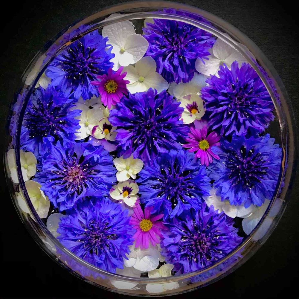 雨予報だったので昨日の夕方に作っておいたなんちゃって花手水…またの名をフローティングフラワー💙