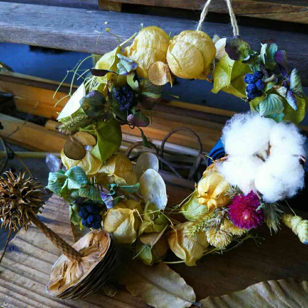 ドライ、せっかくあっても、こんなステキなリースにすること思いつかない😅