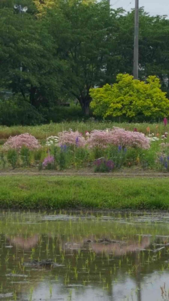 田植えの季節は、田んぼがイキイキとして、、…稲の青々した所を見てるだけでパワー頂けます~ピンク色の優しい色が、ほんのり、水面に入って、とても素敵です😌💓