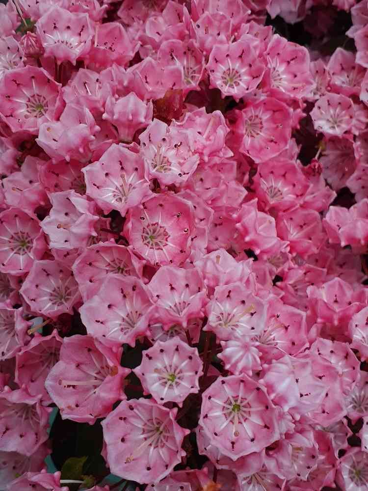 ピンクのカルミア カルミアオズボレッドですね😄💗💗蕾だけは牡丹園でみましたが、その後緊急事態宣言発令でず〜っと閉園中。花が咲いたの見に行けないのが残念です😅