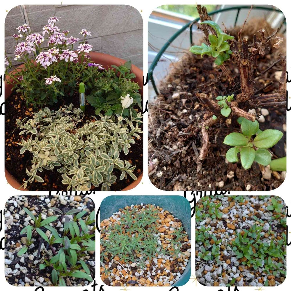 冬の間を乗り切った植物達の逞しさに感動を覚えつつ、ケアを終えてようやく写真上げれる段階になったのでご紹介😃✨右上のは家でコナジラミが付いてしまって駆除に追われ、最終的に切り戻してまた芽吹いてきた状態のフクシアです!我が家の復活の女王ですね😆🔥何度も駄目にしかけては復活してくれます!種まきした花も芽吹いてきて嬉しい限りです😋ただ左下のは何の種か忘れちゃいました😂💦