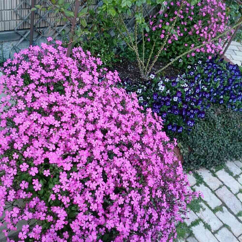綺麗なお庭、ピンクの花がこんもりして可愛いですね💕