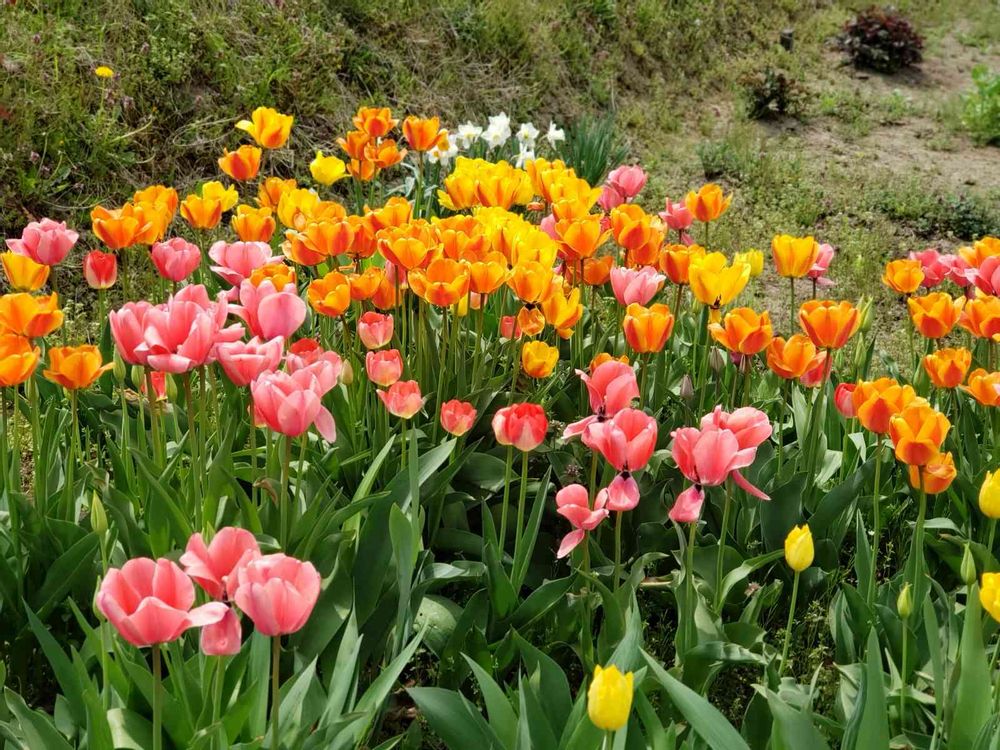 私の実家‥野菜畑の隣にチューリップが沢山咲いています。母は、毎日草を取り綺麗にしていたのに‥野菜畑もSTOP!