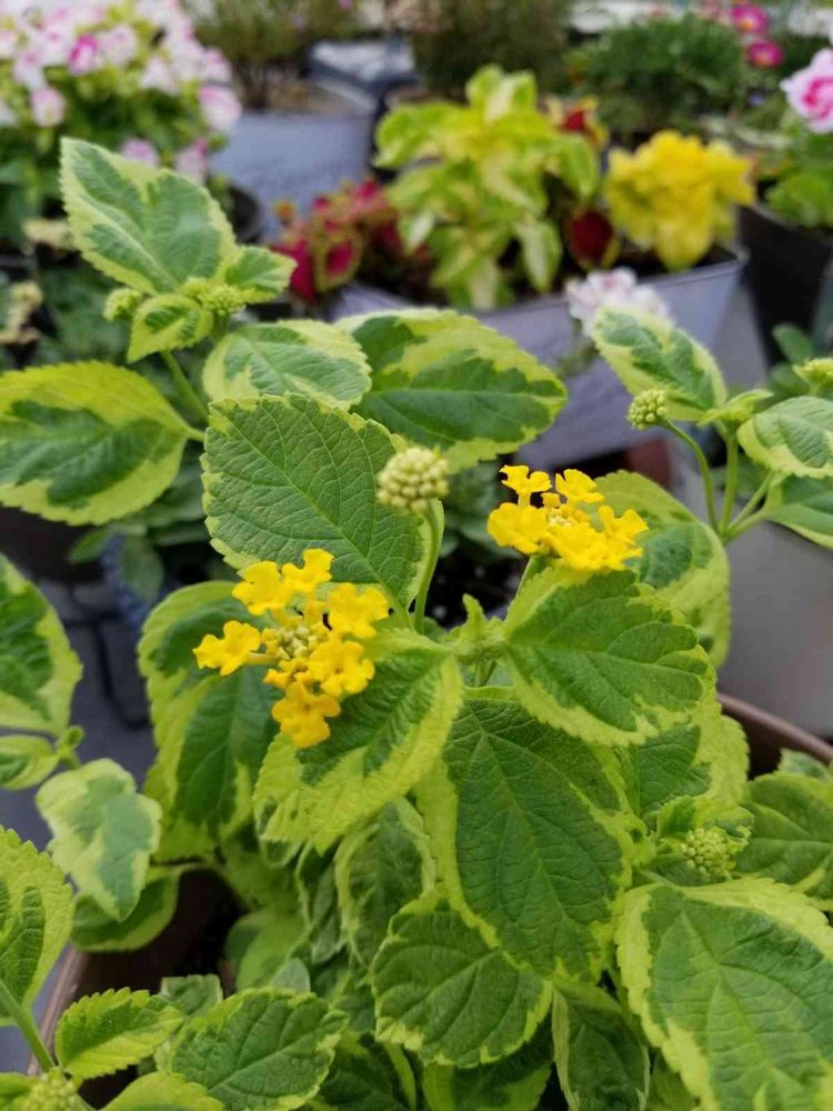 可愛い斑入りの葉っぱに可愛い黄色いお花のランタナ🥰