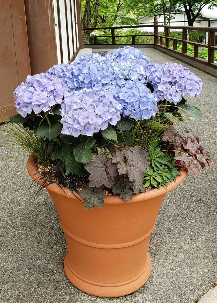アジサイを寄せ植えに使うという考えが、私にはありませんでした。😅