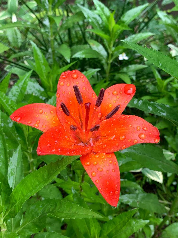 あいにくの雨☔ですが🥰お庭の鮮やかリリーで気分もリフレッシュ🌿。・:+°