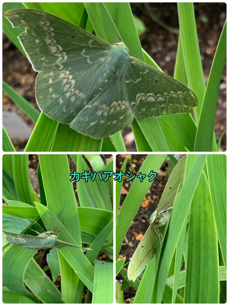 シャクトリムシの仲間で、幼虫の写真を調べたら、このソライロキキョウアヤメの葉にへばりついてる成虫より、見つけにくいほどの擬態化した姿でした🧐