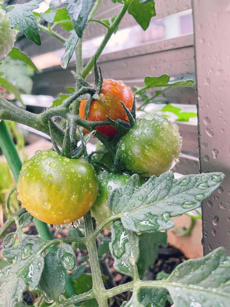 雨で寒いね〜。しかし、トマトは🍅赤く色付いてきました。❤️やったー‼️