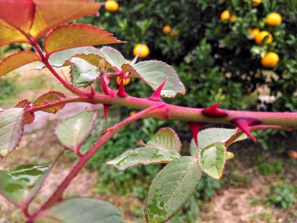 この大きなバラの三角の棘、色がキレイで、好きなんです💓