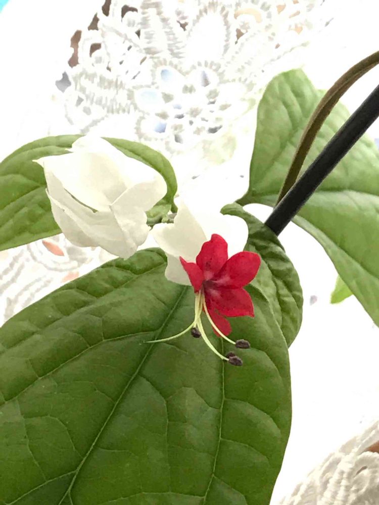 真っ白な萼から真っ赤なお花が飛び出てくるのがすごく可愛いです💕