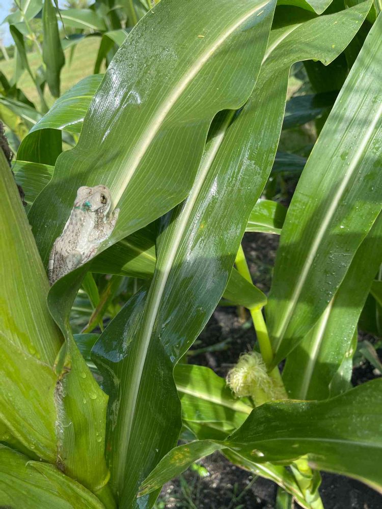 今朝も水かけの時にチェックしたけど同じところにいましたよ。とうもろこしには虫も沢山寄ってきますが鳥も来るので少し心配です😨