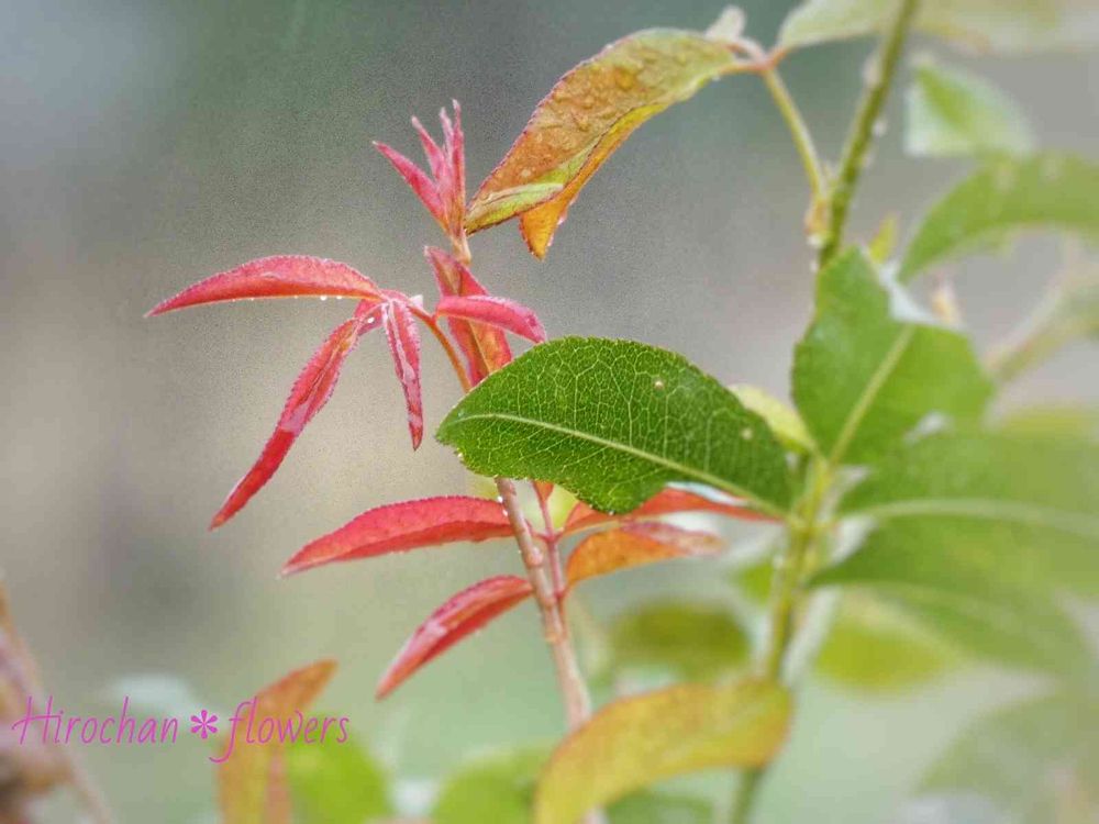 花が 咲き終わると 赤く可愛い新芽が たくさん 出て来ます。