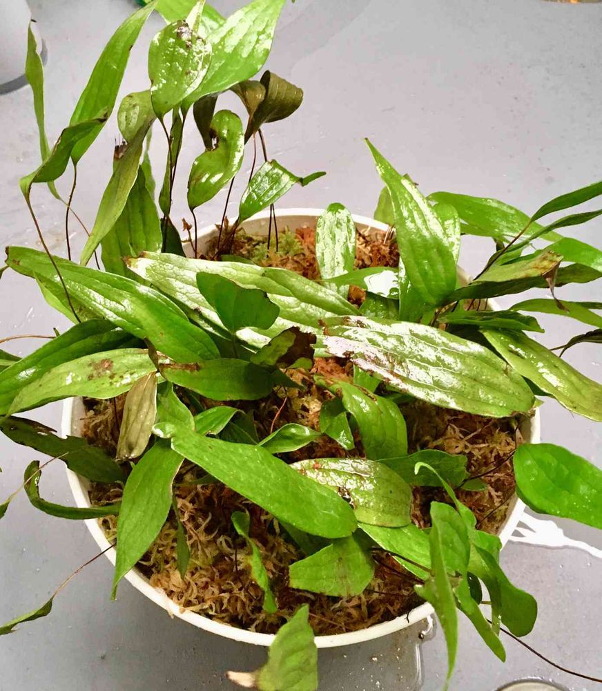 筋一葉。葉に平行する形でスジがあるのでこの名が付いた。だいぶ以前から葛藤しておりましたよ、欲しくて欲しくて。なんで我慢していたのかというと、数あるシダの中でもトップレベルで育てるのが難しいから。今回ばかりは魔がさしてしまいました。