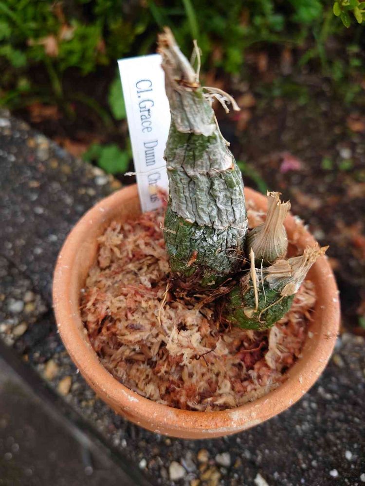 鉢底に100均のペット飼育用の炭を、あとはかたく水ごけでくるんで植えてみましたよ。