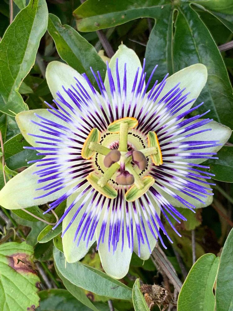 庭のトケイソウの花が咲きました。グリーンカーテン仕立てにしたのが失敗だったかなぁ😅庭中暴走しています🤣