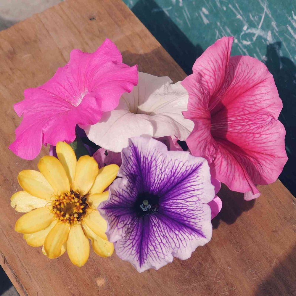 近所のおばぁちゃんから貰った花がらを寄せ集めて🎵