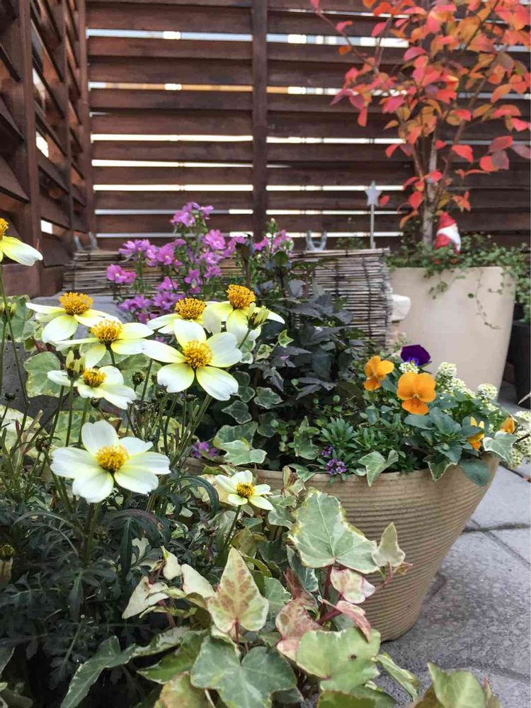 バルコニー/ベランダ,ウインターコスモス,秋の寄せ植えの投稿画像