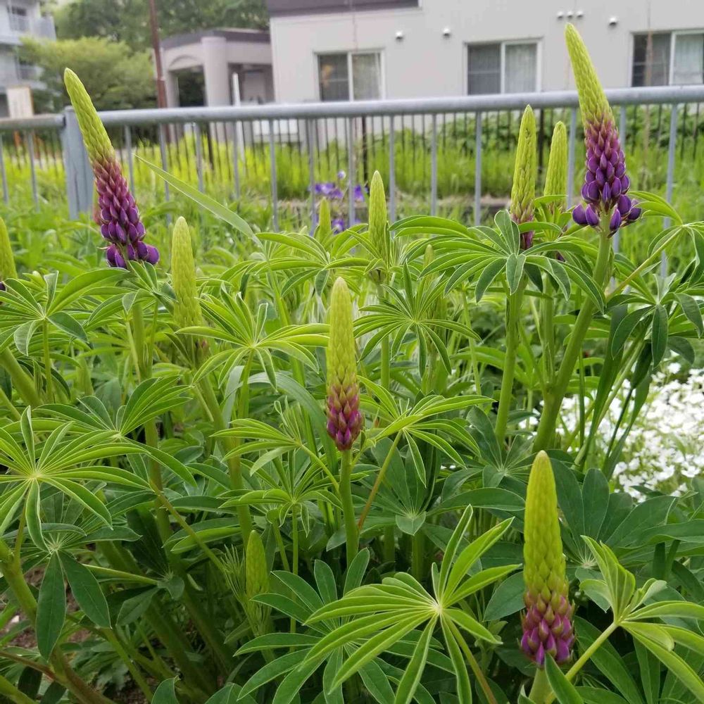 夏の庭で目を惹く ルピナス が咲き始めた。これから、てっぺんまで咲き進み満開になる花。ノボリフジ(昇り藤)の別名も。葉っぱも傘が開いたようでかっこいい。花の咲き始めがこんなに可愛いことに気づけて嬉しい。