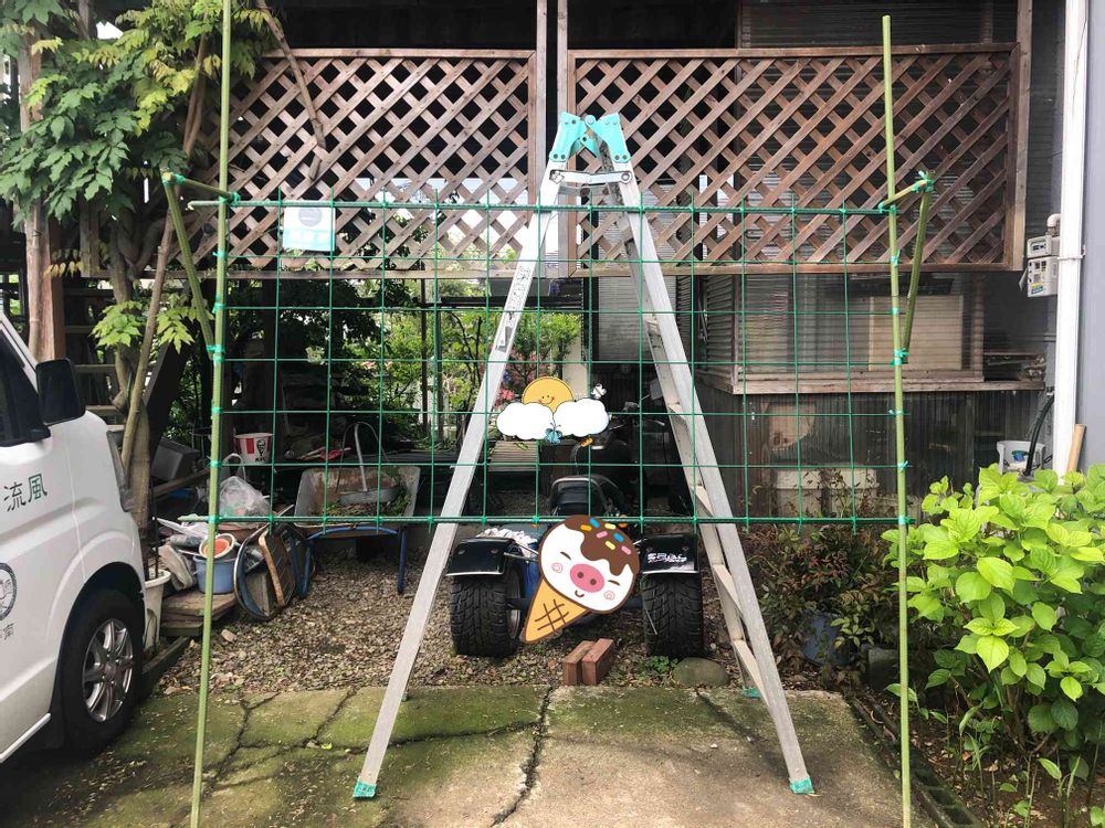 ツル薔薇🌹いつも花の重みで倒れてしまうので、これでやっと倒れずに咲いてくれると思います🤣