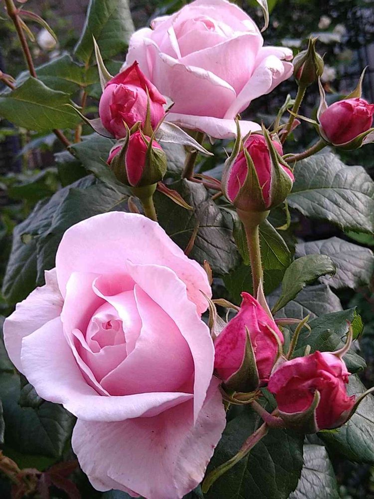 ヘリテージさん濃いピンクのツボミがいっぱい💕✨咲くと淡い優しいピンクのバラなのですね🤗 ♬︎*.:*素敵〜💓✨