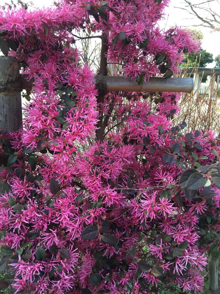 「ベニバナトキワマンサク」です。最近、マンションのエクステリアに良く使われます。