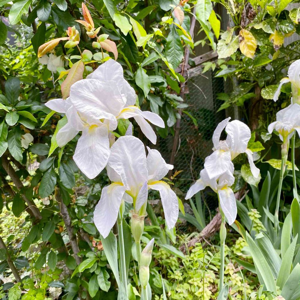 微妙に似ていてイチハツの方はスッキリしているのに対し、ジャーマンアイリスは上に立ち上がった花びらが大きくヒラヒラと豪華な気がします😄