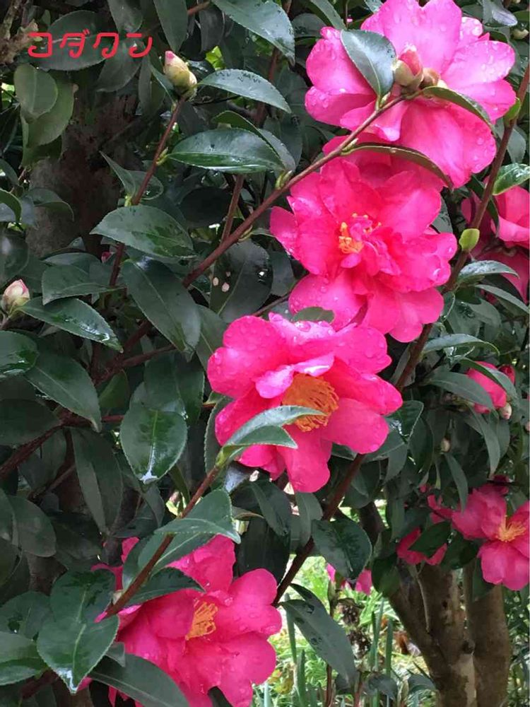 山茶花が整列していますね😄💕先頭にトラブル発生かな。慌てて首を向こう側に向けています💦
